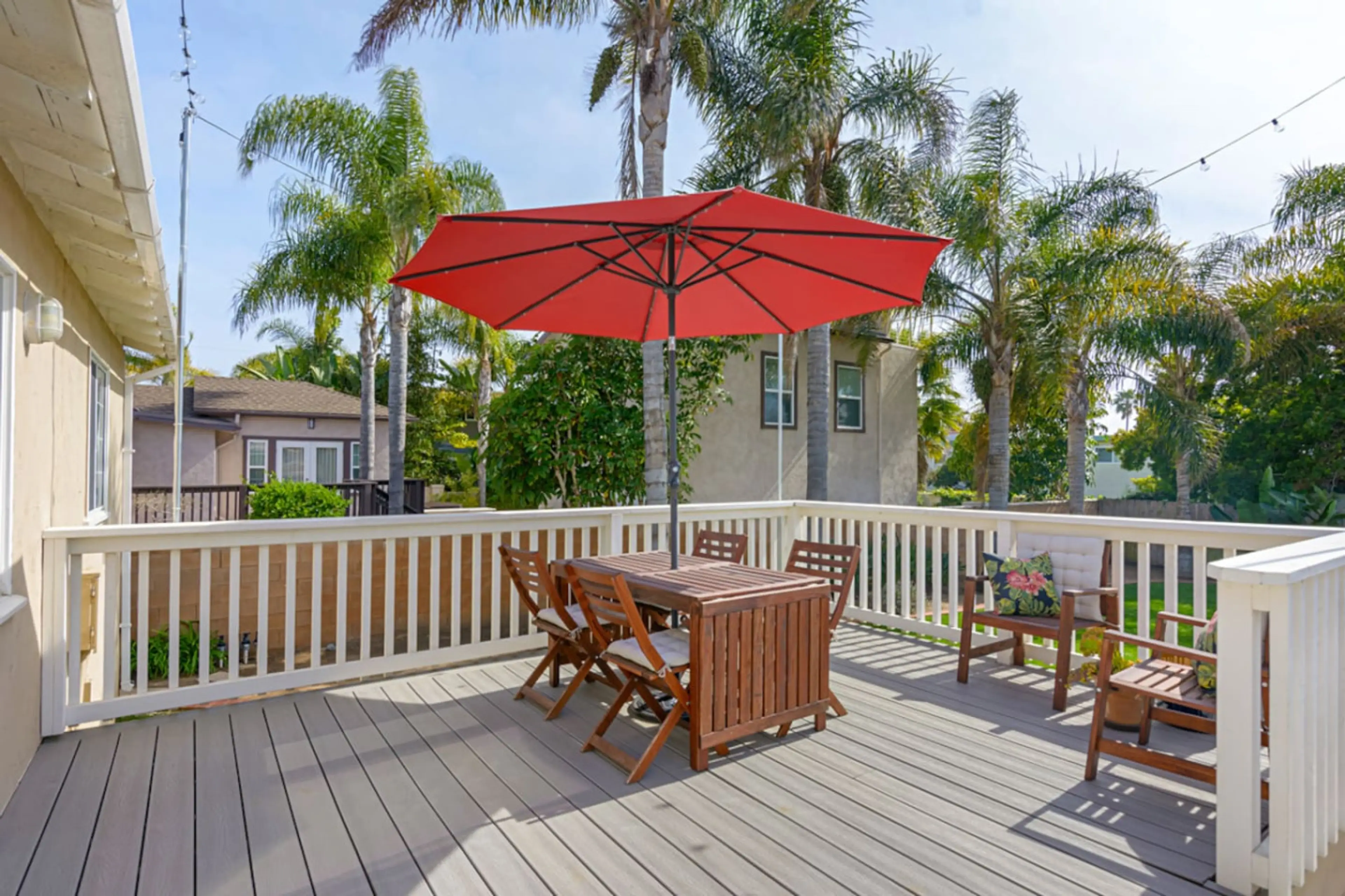 Positive: Perfect location! Walk 1 block to the beach and 3-4 blocks to Carlsbad Village. Great food and shopping. My son rented a surf board and surfed 1 block from the house. We hosted my husbands family to his mothers 102yr old Birthday, about 10 people. It was so nice to have the balcony with table and lawn area. It’s beautiful!!!